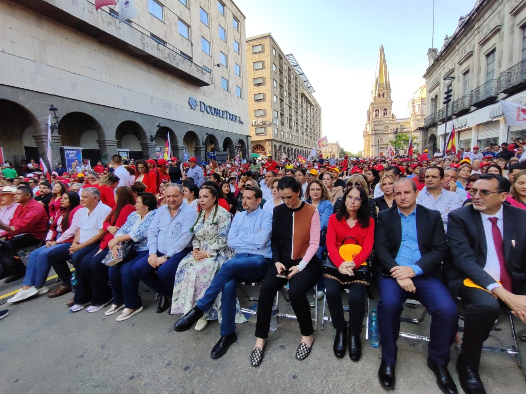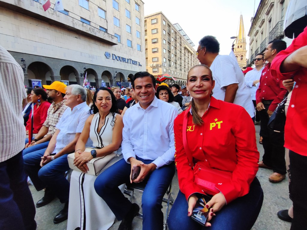 Ante una plaza Imelda Virgen, frente a Palacio de Gobierno, repleta de militantes y simpatizantes del Partido del Trabajo, el diputado federal José Luis Sánchez González, rindió su primer informe de actividades legislativas, acompañado en todo momento por su compañero diputado federal Javier Guizar en donde resaltó el apoyo a las madres buscadoras y al genocidio del pueblo palestino.