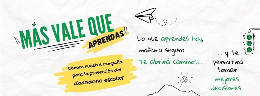 “En la campaña en donde estamos colocando el mensaje Más Vale que Aprendas, una frase un poco chusca, de advertencia es para llamar la atención y decir que, si la escuela requiere trabajo, formación académica, pero también nos da habilidades para vivir, para estar con los otros, para tener conversaciones, llegar a acuerdos, para saber quiénes somos y construir identidad a través de nosotros”.