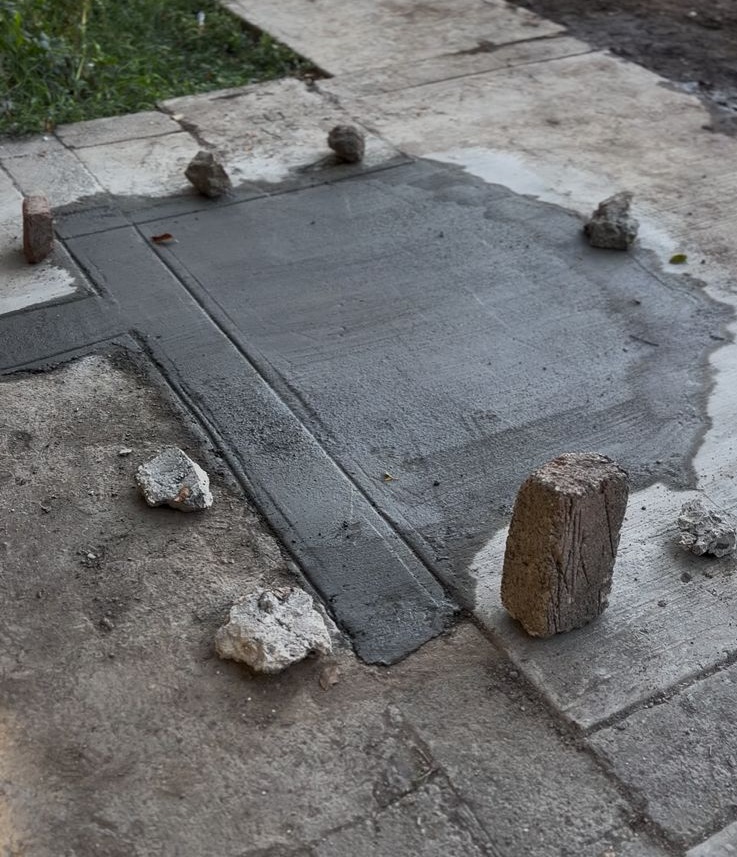 Para la reparación se utilizaron 12 metros cúbicos de material, que fueron compactados antes de colocar una nueva losa de concreto.