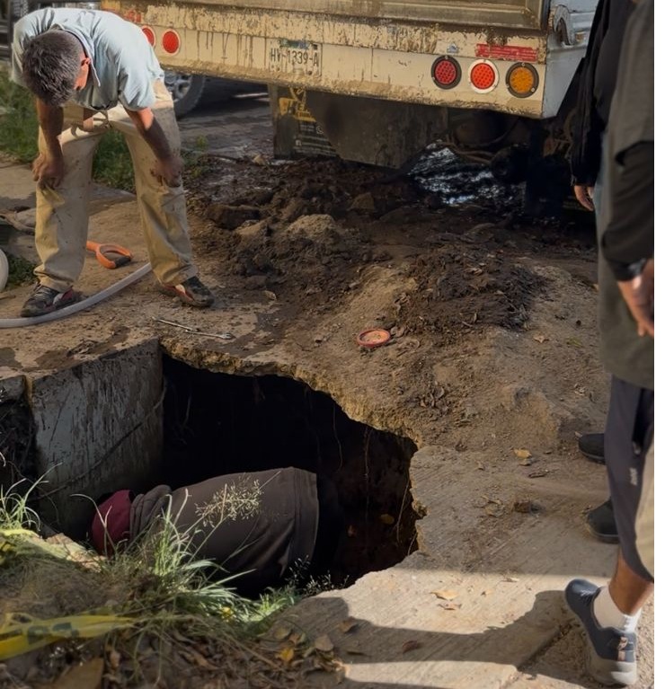 El socavón, según denunciaron vecinos, llevaba al menos cinco meses sin atención. Las losas estaban fracturadas, había exposición de agua y ductos eléctricos, lo que representaba un peligro constante para quienes transitaban por la zona.