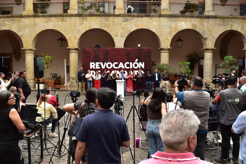 Guadalajara, Jalisco a 20 de abril de 2026. Esta mañana en el patio central del Congreso del Estado, la diputada Itzul Barrera y el diputado Leonardo Almaguer, anunciaron la presentación dos iniciativas que buscan eliminar requisitos para que el ejercicio ciudadano de revocación de mandato tanto para el Ejecutivo estatal como para los presidentes municipales pueda ser en la práctica un derecho.